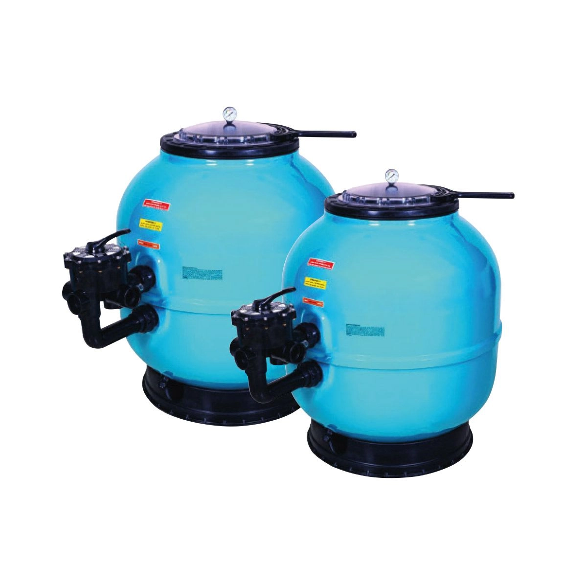 Le filtre à sable de piscine assure la filtration mécanique de l’eau à travers une charge filtrante, composée d’un mélange de sable et de gravier ou de verre filtrant. Il se positionne juste après la pompe de filtration dans le local technique, afin de tamiser l’eau et retenir toutes les impuretés.